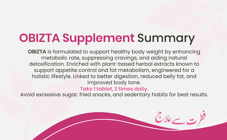 Obizta Slim Down is designed to help manage weight through natural herbal extracts that support appetite control, boost metabolism, reduce cravings, and encourage fat breakdown—making it ideal when combined with a balanced diet and exercise routine